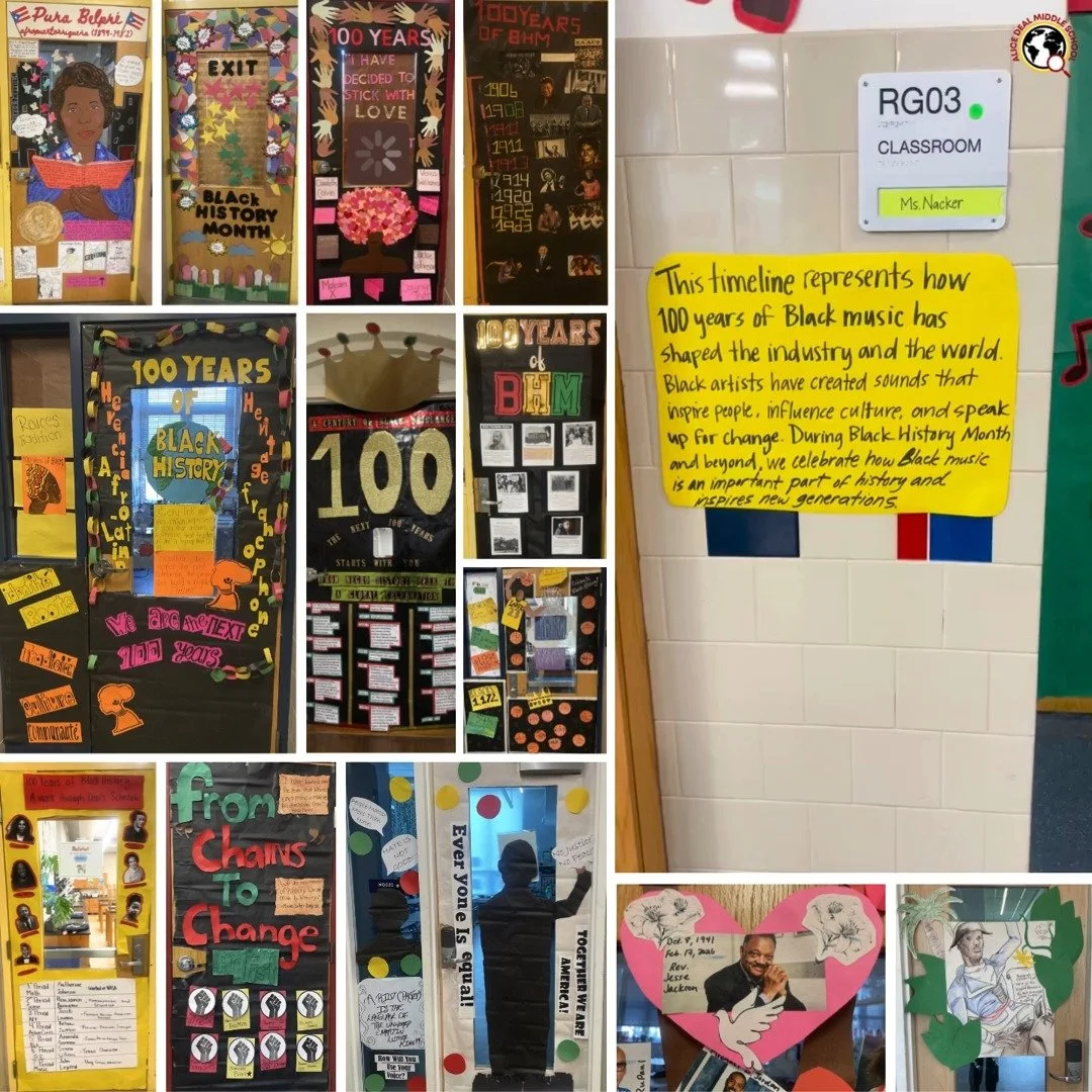 Shout outs to our students and staff for celebrating Black History Month with their door decorating designs! #admsherewegrow